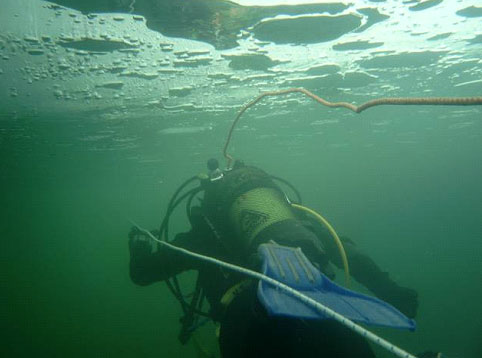 Figura 1 Immersione sotto il ghiaccio – Lago Palù