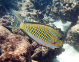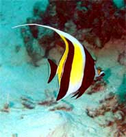 Poco meno di due anni fa dei grossi sconvolgimenti climatici, probabilmente legati al Niño e all’effetto serra, oltre ad un aumento della temperatura hanno causato altri strani fenomeni. L’acqua era insolitamente ricca di plancton ed anche le correnti non rispecchiavano più i normali flussi stagionali. L’incredibile varietà e quantità di pesci pelagici è forse legata a questi fenomeni. Molto frequenti erano gli incontri con tonni, mante, squali con pinna bianca e squali grigi (questi ultimi anche di notevoli dimensioni). La varietà ed il numero dei pesci di barriera sembrava inalterata, anche se in effetti c’era una netta prevalenza di pesci fitofagi rispetto a quelli mangiatori di polipi. Sicuramente uno splendido pesce solitamente numeroso non era presente: l’ Oxymonocanthus longirostris.