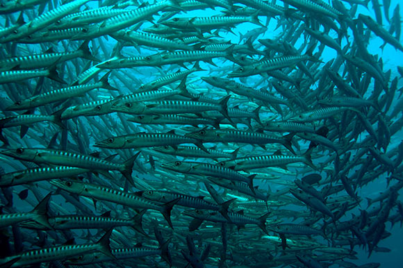 da grandi pelagici e svariate specie di pesci, dai vortici di barracuda a grandi