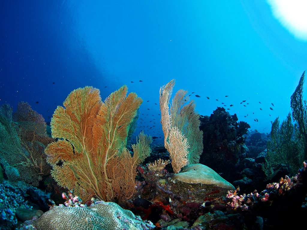 E che dire degli incontri notturni con gli squali balena? Ci sono infatti determinati ormeggi che favoriscono l’arrivo a poppa di spesso più d’un gigantesco individuo. Questo grazie alla quantità di plancton attirato dall’illuminazione di bordo che diventa un’esca imperdibile per il gentile golosone a pois.
