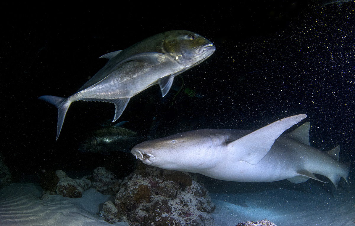 Da Suvadiva poi a seconda delle richieste e della navigabilità è possibile portarsi ancora più a sud attraversando la linea equatoriale per visitare e immergersi negli atolli di FOAHMULAH E ADDU. Qui la popolazione di squali aumenta in numero di esemplari e soprattutto specie: con il famoso Tiger Zoo l’interazione con gli squali tigre è pressoché garantita, ma sono alte anche le probabilità di incontrare squali seta e volpe.