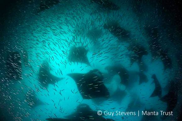 Fig. 3 – Aggregazione di mante ad Hanifaru Bay MPA