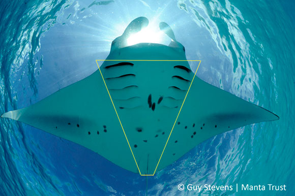 Uno dei metodi di ricerca chiave nello studio delle mante è la foto-identificazione. Ogni singola manta possiede infatti, sulla faccia ventrale, un disegno a macchie che, come un’impronta digitale, ne permette l’identificazione (Fig. 5). Grazie a questo semplice metodo gli esperti del Manta Trust possono stimare la dimensione e la struttura delle popolazioni di mante, chiarirne gli spostamenti e le migrazioni, stabilirne i ritmi riproduttivi ed individuare importanti siti di aggregazione.