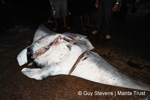 Le branchiospine di questi giganti oceanici, una volta essicate, vengono consumate sotto forma di tonico, localmente noto come “Peng Yu Sai”, dalle presunte proprietà medicinali miracolose quali la purificazione del sangue da tossine ed il rafforzamento del sistema immunitario. Il lento tasso di crescita delle mante (la maturazione sessuale non è raggiunta prima dei 10-15 anni di vita), associato ad un bassissimo tasso riproduttivo (un piccolo ogni 3-5 anni), rendono questa specie estremamente vulnerabile. A causa della pesca indiscriminata e non sostenibile, le mante, così come le loro affini mobule, sono a serio rischio di scomparsa in diversi paesi quali Messico, Perù, Mozambico, Indonesia e Filippine, per citarne alcuni.