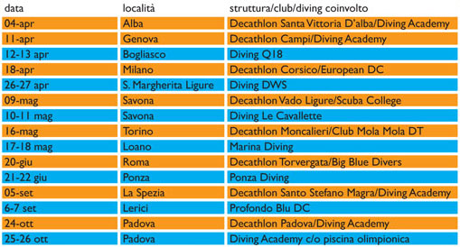 specialità PADI. Seminari SUEX e PADI coroneranno l’evento.