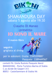 Ebbene sì, dopo il Triton Dive Club di Bergeggi, e dopo il Blue Aura Diving Centre di Santa Flavia, è stato indetto un altro ‘Shamandura Day’ e Io sono il Mare volerà (sempre tallonato dal suo autore) verso la Campania. Sarà una festa tra subacquei e, come sempre, un riabbracciarsi tra figli di una shamandura e vecchie volpi del mare. In questo caso l’autore riabbraccerà anche uno dei suoi protagonisti…