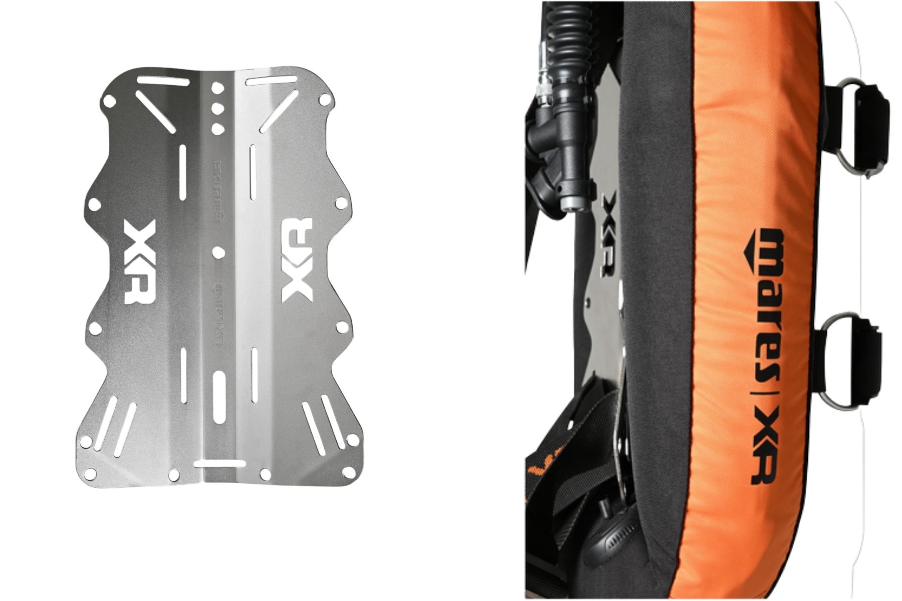 Il corrugato a K con tubo flessibile a sezione ovale ottimizza il flusso d’aria, consentendo un controllo preciso della galleggiabilità a tutte le profondità. Lo schienalino in acciaio inossidabile da 3 mm (2,1 kg) completa il sistema, con bordi arrotondati per ridurre gli attriti e bulloni a testa piatta che ne permettono l’aggiustamento in altezza.