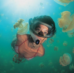 All’interno di una Rock Island si trova un lago salato che ospita una miriade di meduse non urticanti in un ecosistema unico al mondo: il famoso Jellyfish Lake.