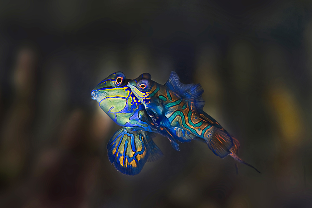 Il Mandarin Fish, Sinchiropus splendidus, è un piccolo e coloratissimo pesce il cui nome deriva dalla livrea simile alle vesti di un Mandarino Cinese. Di notte si dedica alle attività riproduttive e, appena dopo il tramonto, iniziano i corteggiamenti e gli accoppiamenti. I diving conoscono i siti migliori per riprendere questi splendidi pesci ed organizzano specifiche uscite per fotografare il momento del “mating”.