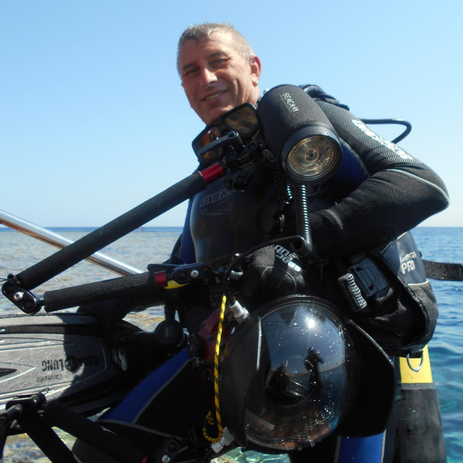 Adriano Marchiori fa parte da diversi anni del Nucleo Sommozzatori della Protezione Civile FIAS Verona Sub ed è anche un fotografo esperto in biologia marina e lacustre. Ha realizzato più di 3000 immersioni in tutti i mari e oceani del mondo, ma in realtà parliamo di acqua in qualsiasi luogo ci sia abbastanza spazio per immergersi con la sua macchina fotografica, cercando di catturare immagini che documentino l’esistenza di specie ittiche, a volte ancora da classificare.