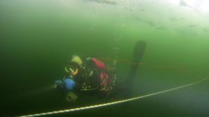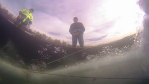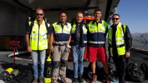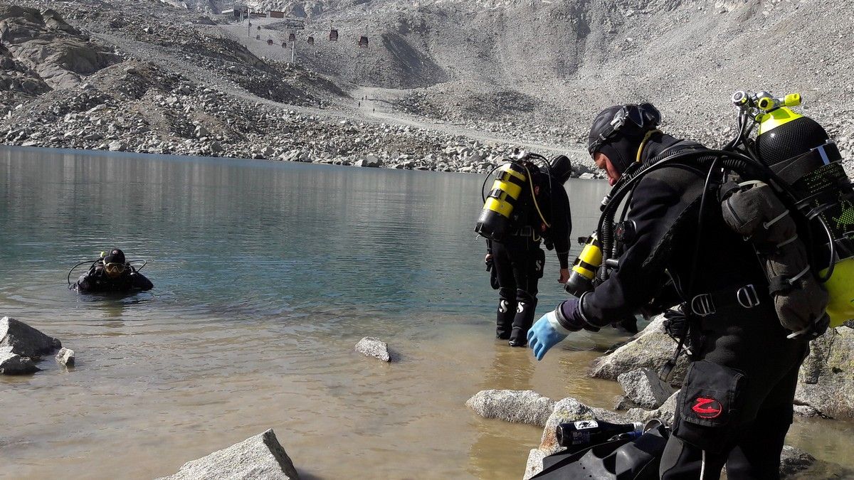 Quest’anno, ho potuto incontrarli un paio di volte . La prima , in febbraio al lago del Mortirolo in Valle Camonica nel Bresciano, a quota 1800 mt intenti ad allestire un campo per una immersione in altitudine ma soprattutto sotto al ghiaccio. Mentre la seconda volta che ho “.. incrociato le loro bolle ” , è stato in una bellissima esperienza al Lago Monticelli, meta estiva oramai fissa, sotto al ghiacciaio del Presena, a quota 2580 mt.