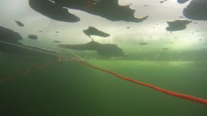 Tolti i 3 cm di ghiaccio notturno dalle buche, sono iniziate le immersioni in coppia, vincolate alla cima guida con moschettone e cimetta galleggiante da 3 mt : semplicemente spettacolare !!!