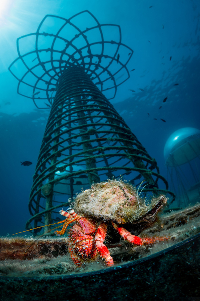“Nemo’s è uno scatto che ritrae un Paguro eremita, dai vivaci toni rossi, che si muove sul fondale marino nei pressi della struttura del Nemo’s.