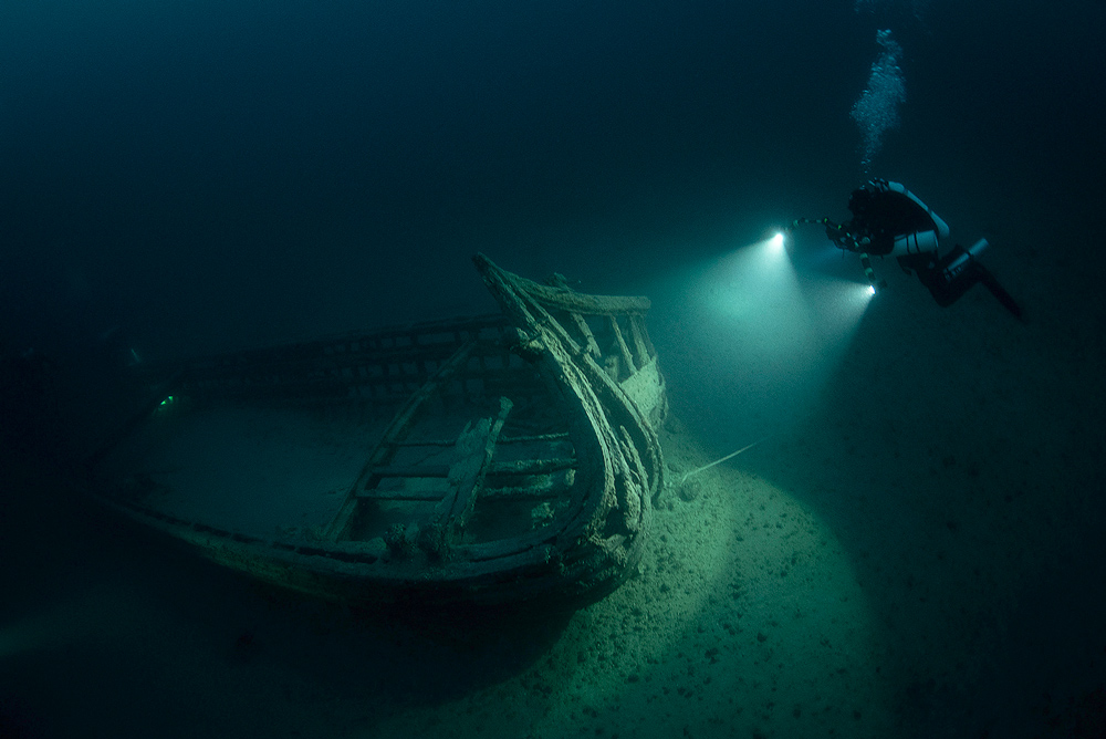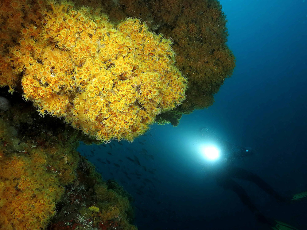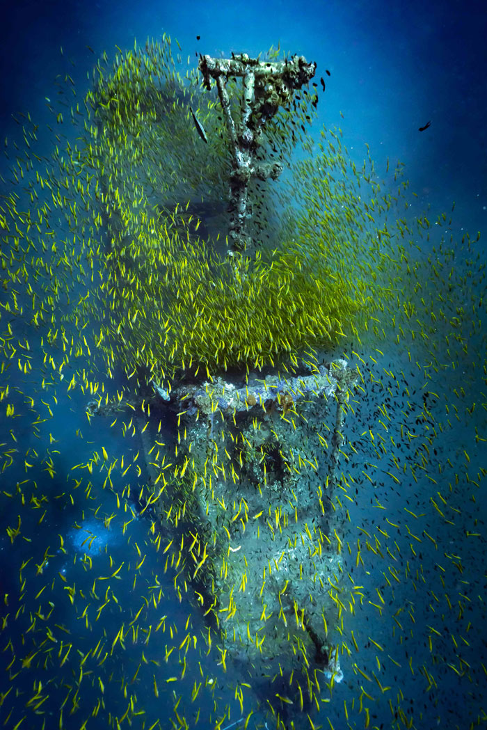 Accanto si intravedono le cupole sommerse che aggiungono un elemento futuristico a questo ambiente subacqueo.