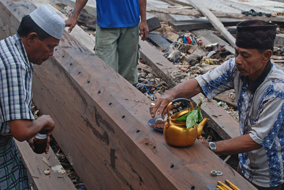 Il taglio della chiglia (potong lunas) è accompagnato da una cerimonia religiosa.
