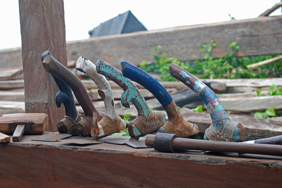 Strumenti tradizionali: una serie di mazzuoli utilizzati nella costruzione delle navi.