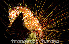 In alto a sx un branco di pesci trombetta. A dx un simpatico cavalluccio marino.