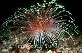 La foresta di gorgonie lascia poi spazio a molti altri celenterati, tra cui risaltano secolari esemplari di Cerianthus, con splendide corone di tentacoli bianchi. In questa esaltante scenografia è possibile incontrare creature molto strane oltre che rare. Come nel caso del pesce San Pietro, mimetizzato a regola d’arte tra le gorgonie, elegante nel nuoto e invisibile ad un occhio poco allenato. Ancora più difficile da individuare, sempre per via del suo mimetismo, è la rana pescatrice, un pesce abituato a starsene acquattato sul fondo in attesa di una preda. Grossi scorfani rossi, cernie molto scaltre, saraghi fiduciosi e dentici timidissimi completano un quadro molto allettante.