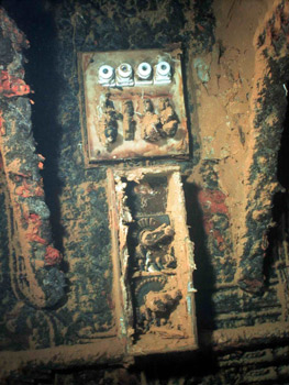 Con un po’ di apprensione mi addentro insieme a Lorenzo, che ora sta scattando molte foto, nel ventre dello scafo; tutto ciò che mi circonda è ora nettamente distinguibile, qui la vita tropicale non ha attecchito, tranne che i rari punti nascosti; il giardino fiorito di vita bentonica che si trova all’esterno delle lamiere non trova spazio nel buio e nell’immobilità.