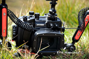 Di dimensioni ridotte, scafandra con estrema precisione la compatta di casa Nikon, permettendo l’utilizzo di tutte le principali funzioni della fotocamera. Stagno fino a -60 metri, lo scafandro è dotato di una chiusura con doppio oring ed un pratico sistema di blocco di sicurezza laterale che ruota su se stesso ed è provvisto di un sistema di sicurezza. La P7000 si inserisce con estrema facilità nella FP7000 ed alcuni supporti in gomma, presenti all’interno della custodia, bloccano la fotocamera in maniera perfetta.