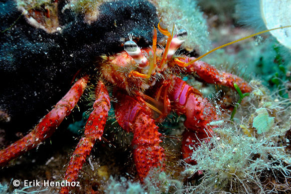 I flash collegati tramite i cavi in fibra ottica ci permettono di gestire al meglio la luce e le esposizioni. In questo caso fotografiamo un minuscolo Paguro.