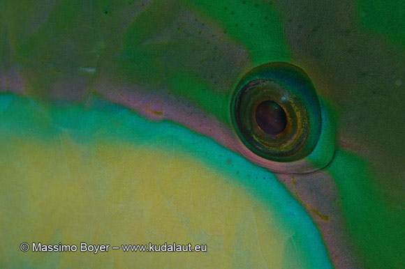 L’iride del pesce pappagallo Chlorurus bleekeri segnala lo stato d’animo del pesce.