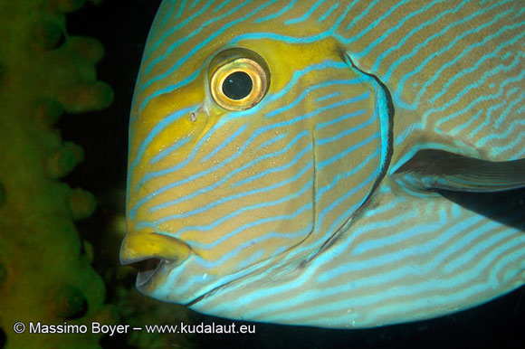 L’iride del pesce chirurgo Acanthurus xanthopterus segnala lo stato d’animo del pesce.