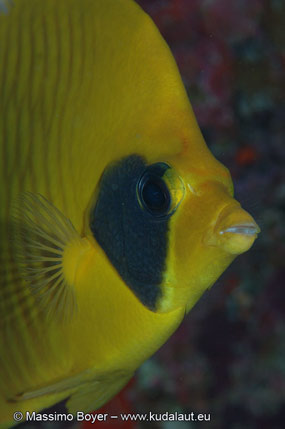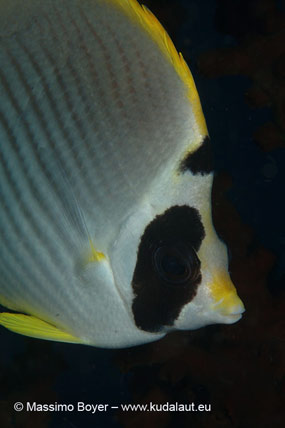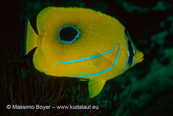Chaetodon bennetti, esempio di falso occhio sulla parte posteriore dell’animale.