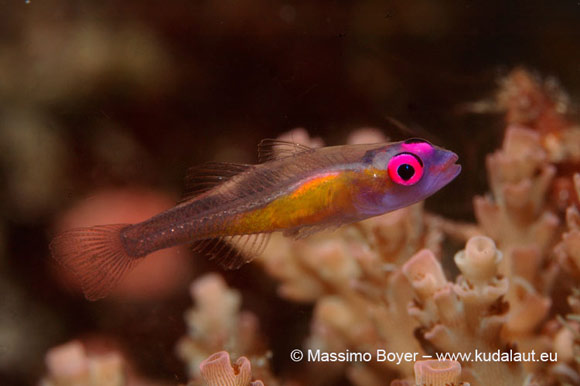 L’incredibile occhio rosa del ghiozzo Bryaninops natans.