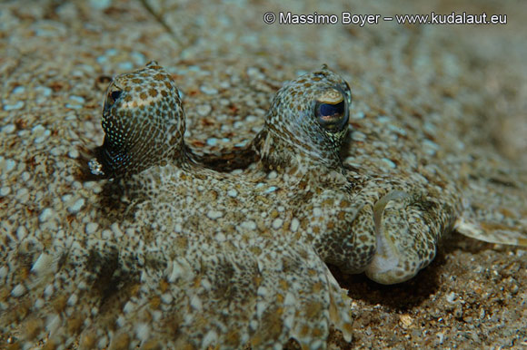 Incredibili occhi a periscopio del rombo Bothus mancus.