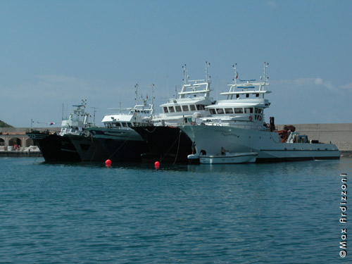 Mi trovo sul fly dell’Angela Madre, una delle ammiraglie della flotta “Associazione Produttori Tonnieri del Tirreno” . Un moto pesca lungo 42 metri per 107 tonnellate di stazza varato quest’anno; quella che viene definita una Tonnara Volante. Da qui lo spettacolo è unico, con lo sfondo della fortezza de la Valletta illuminata, 24 barche che si muovono una dietro l’altra in un ordine indecifrabile, scivolano sull’acqua quasi silenziose mentre recuperano o fierro (l’ancora, nda). Si lascia tutti insieme la nostra base operativa a Malta, direzione, Canale di Sicilia e Tirreno. E’ iniziata la stagione di pesca per questa gente, dopo un intero inverno dedicato a sistemare le barche, le reti , i dispositivi vari. Ogni barca ha a bordo dalle 14 alle 16 persone di equipaggio circa, ognuno con il suo compito preciso, ognuno con la sua età, la sua esperienza. Attualmente questa flotta è l’espressione della più evoluta tecnica di pesca al tonno che esista in Mediterraneo. Un’ evoluzione tutta italiana, esportata anche in Francia ad opera di qualche emigrato di Cetara, in particolare, piccola realtà marinara della costiera amalfitana, ma sede operativa delle più importanti tonnare volanti italiane. Siamo tutti qui per catturare, quello che sicuramente è il pesce commerciale più importante del nostro mediterraneo, il Tonno, Thunnus thynnus (L.) la qualità più pregiata in assoluto. [vedi la scheda del tonno]
