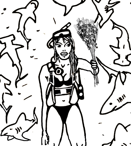 Sferruzzare orsetti a maglia può essere un rimedio alla noia o alla disoccupazione, ma non quell’opportunità di carriera che sognavate da anni. Prendete quindi gli orsetti, i ferri e gettate tutto nel cestino. Tirate fuori dal vecchio baule la vostra muta, la maschera, il GAV, le pinne e annusateli. Anche se mummificati sanno di mare, di neoprene e di libertà. Siete pronti? Via! Preparatevi ad accogliere nei vostri occhi la visione di migliaia di castagnole, banchi d’orate attraversati da tenui raggi di sole, il merletto dei coralli, l’andirivieni di ricciole e barracuda, di gommoni e di bibombolati dal trim apollineo. Preparatevi ad accogliere negli occhi e nell’anima la visione di un magnifico Nettuno in calzamaglia e boccoli, Principe del Mondo Azzurro pronto a prendervi per mano. No? Non vi va? Neanche Venere in ciabattine sullo scoglio in mezzo ai flutti vi va? Orsetti a maglia?
