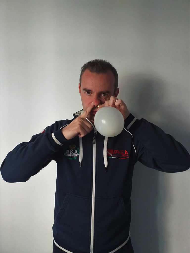 E’ un dispositivo medico composto da un palloncino in lattice da gonfiare con il naso, questo movimento aiuta a introdurre l’aria nell’orecchio medio equilibrando la pressione interna e di conseguenza compensare e far funzionare nel modo corretto la membrana timpanica. Lo suggerisco a tutti gli apneisti che vogliono mantenere l’efficienza della Tuba di Eustachio e del velo palatino, organi fondamentali per il funzionamento dell’orecchio medio per la compensazione
