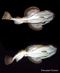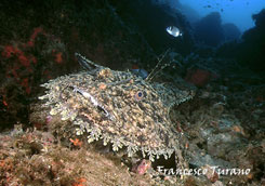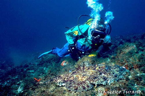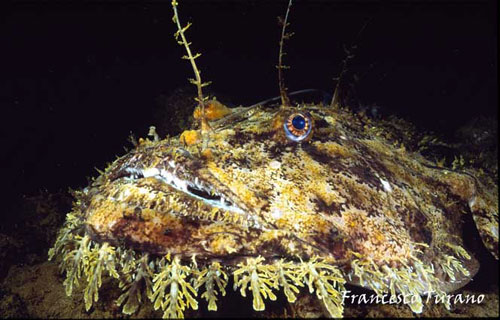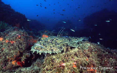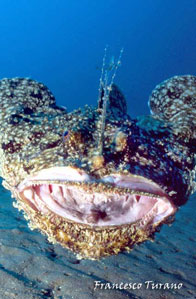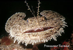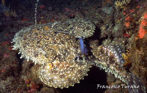 Ricordo una volta, nel mare di Scilla, porta dello Stretto di Messina, una grande pescatrice: nuotava tra le gorgonie, durante uno dei suoi trasferimenti sul fondo, e la disturbai non poco in una lunga immersione che mi vedeva impegnatissimo nella realizzazione di alcune foto. Seguendola a lungo, per alcuni minuti, la rana sembrò irritarsi: a un certo punto, con rapidità che non mi aspettavo, si girò di colpo, ingoiando il mio flash, che per fortuna era agganciato a un lungo braccio metallico che mi consentì, con non poco disagio, di reuperarlo. Che esperienza: con il flash tra le fauci, la pescatirce si dimenava gravando con tutto il suo peso per avere la meglio. Non sapevo che fare, ma pensai che di certo, non potendo ingoiare, di lì a poco avrebbe mollato: e così fu. Niente danni al flash, forse qualche dente ammaccato per la povera rana e, di certo, una brutta esperienza, specie per lei, poverina, che non aveva colpa alcuna…