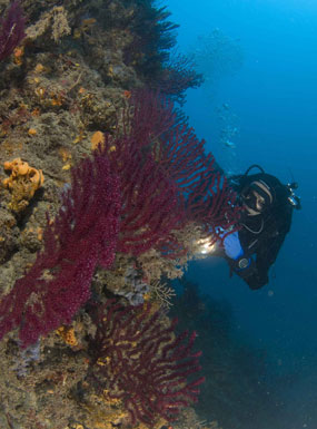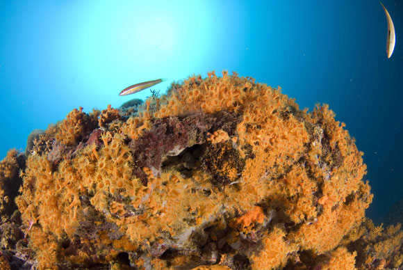 colorate da spugne, spirografi, parazoanthus e gorgonie rosse, gialle e