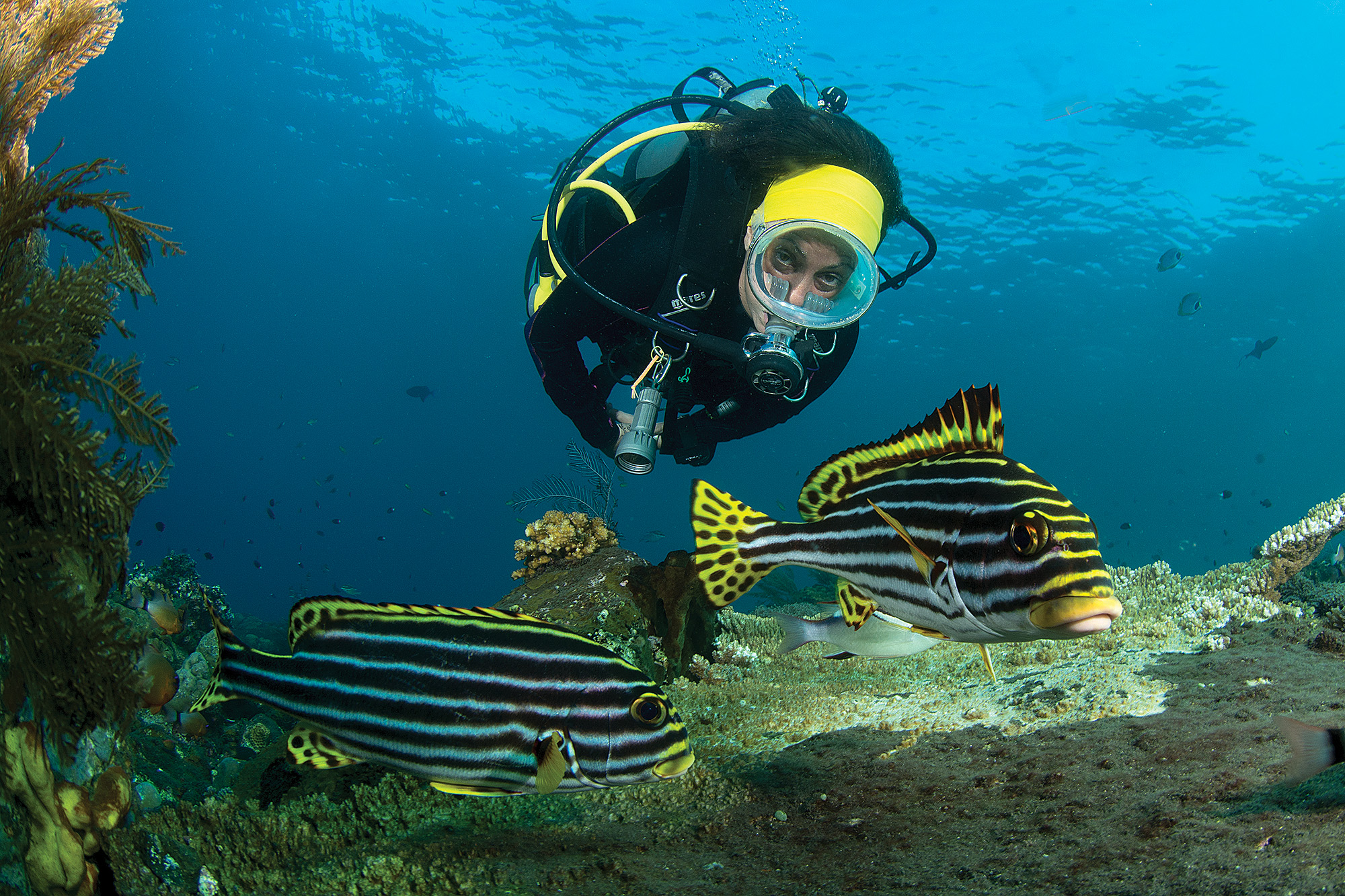 Maschera, boccaglio e pinne: sono essenziali per vedere e muoversi più facilmente nell’acqua.