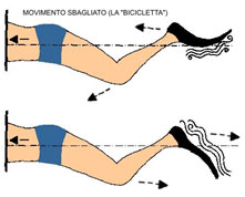 Un errore grossolano che si può commettere (soprattutto per chi è agli inizi e non ha una buona pinneggiata) è quello di pinneggiare con un gesto simile a quello della pedalata. Così facendo si flette la coscia verso il busto, si porta la gamba indietro ed il piede a 90° rispetto alla gamba, gesto questo sicuramente più abituale ma meno efficace.