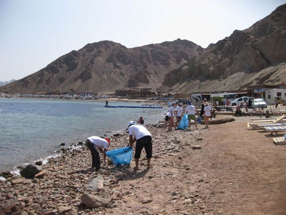 lunghezza di Dahab. I centri di membri che hanno partecipato alla pulizia tra