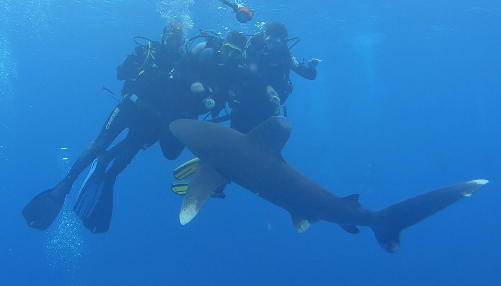 Anche gli squali come molti animali hanno vari tipi di parassiti sul corpo. Le macchie nere sul dorso di un Longimano, in realtà sono parassiti, come i piccoli vermicelli attaccati alla parte posteriore della pinna dorsale. Ce ne sono altri tipi che si vedono solo a contatto con lo squalo e che si spostano sulla pelle. Una mia specialità è togliere i parassiti dal corpo dei Longimano in modo da fargli credere di essere io una “Cleaning Station” questo porta il Longimano a fidarsi delle mie azioni controllate e ritornare per farsi togliere altri parassiti dal corpo. I parassiti in movimento sono più difficili da togliere e vanno “schiacciati”, mentre quelli attaccati alle pinne vanno “strappati”. Altri sul ventre (la parte bianca) vanno “raschiati” per esempio con semplici carezze stando attenti al cuore che si trova nella parte ventrale fra le due pinne pettorali.