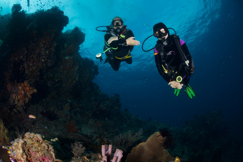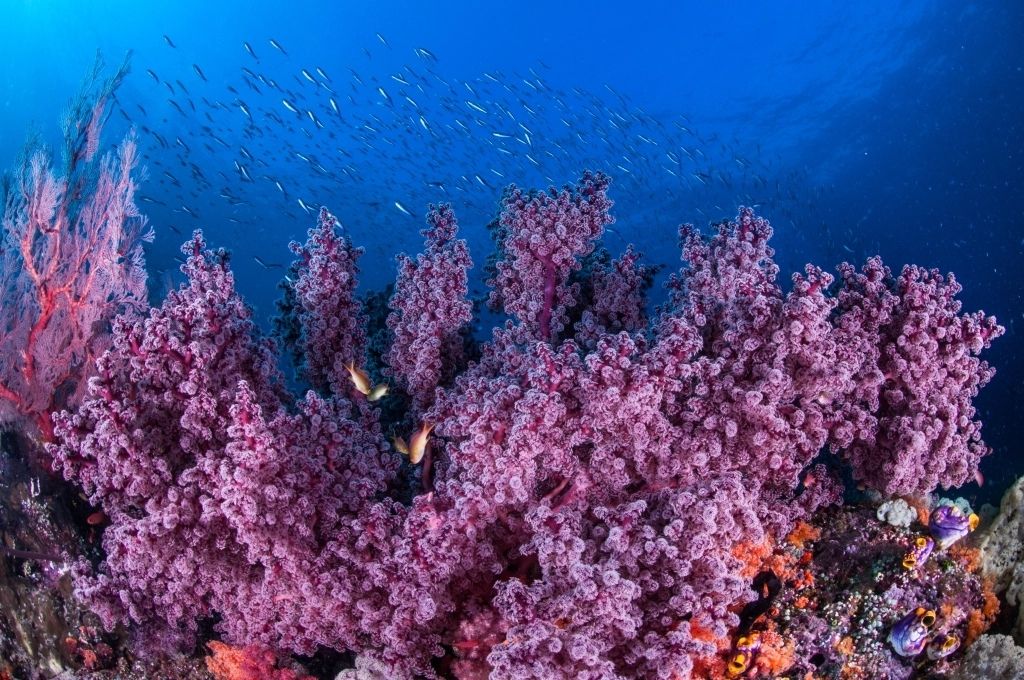 Questo ecosistema unico offre barriere coralline incontaminate con oltre 500 specie di coralli duri e molli, una fauna marina eccezionale che include squali balena e cavallucci marini pigmei e una visibilità eccellente fino a 30 metri.