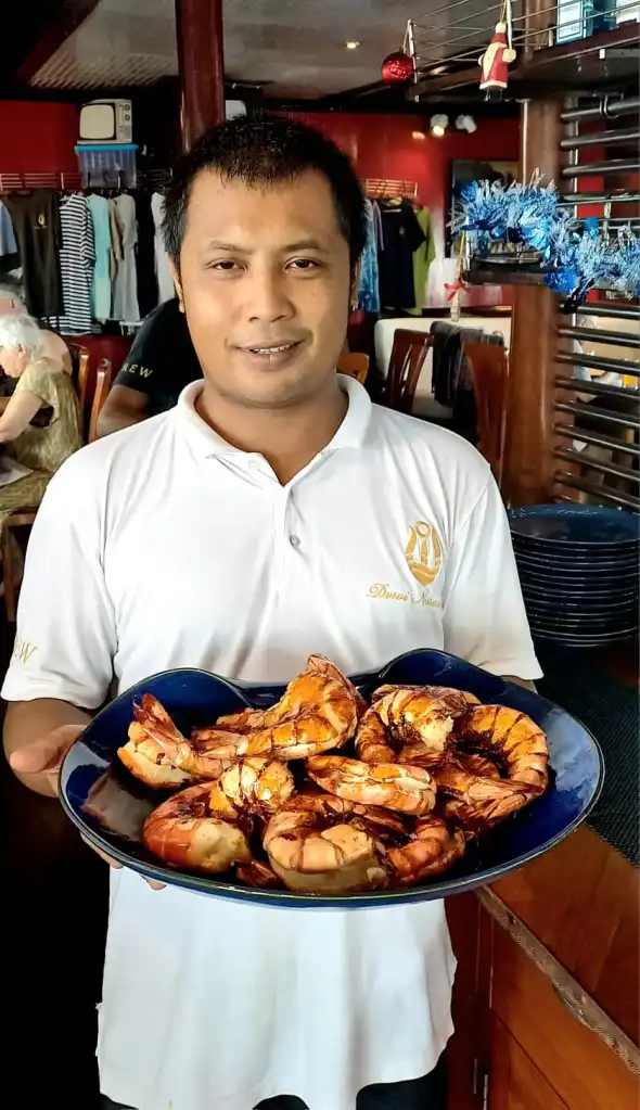 Se avete già fatto immersioni da un gommone, sapete di cosa parlo: salire su quei gommoni scivolosi dopo l’immersione può essere una vera impresa, con risultati spesso tragicomici. Con Dewi Nusantara, queste scomodità sono un lontano ricordo.
