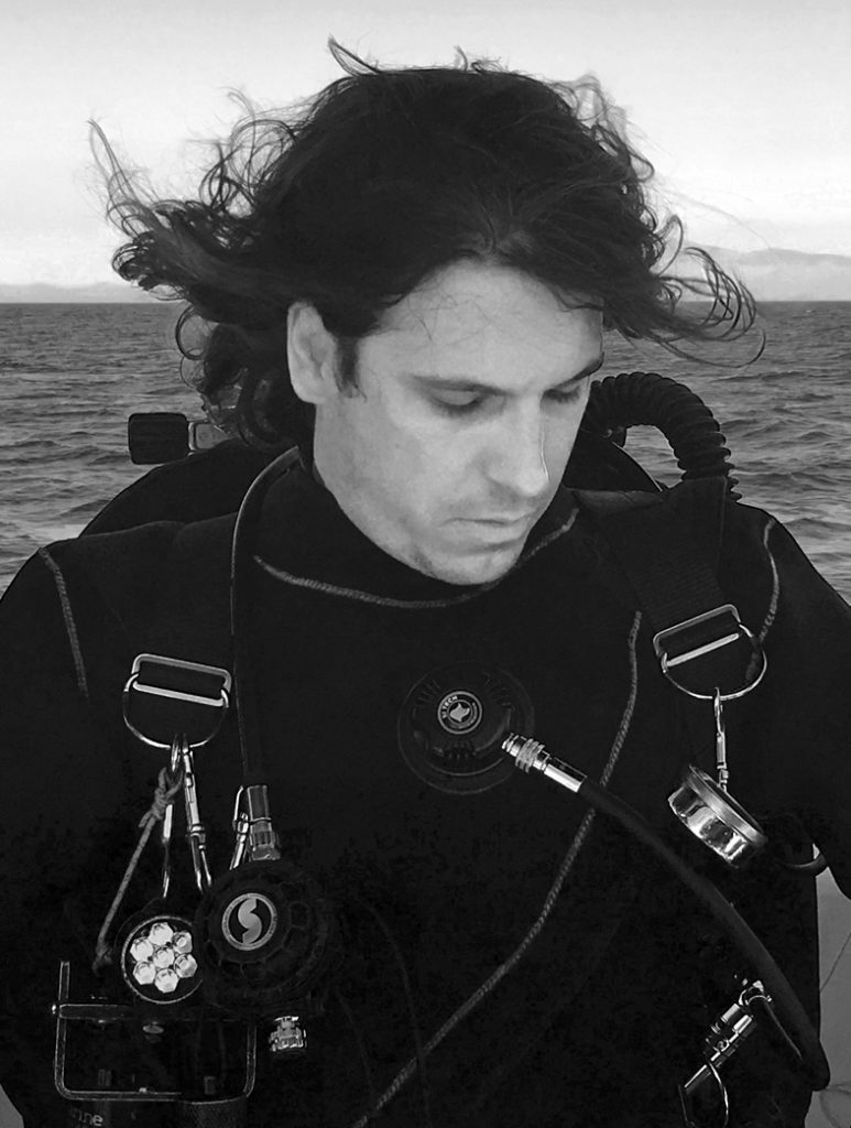 Andrea “Murdock” Alpini (classe 1985), istruttore e subacqueo tecnico, originario di Varese, si immerge con un sistema respiratorio a circuito aperto. È membro dell’Historical Diving Society Italy, collabora con diverse testate di settore.