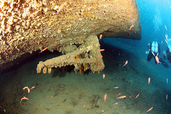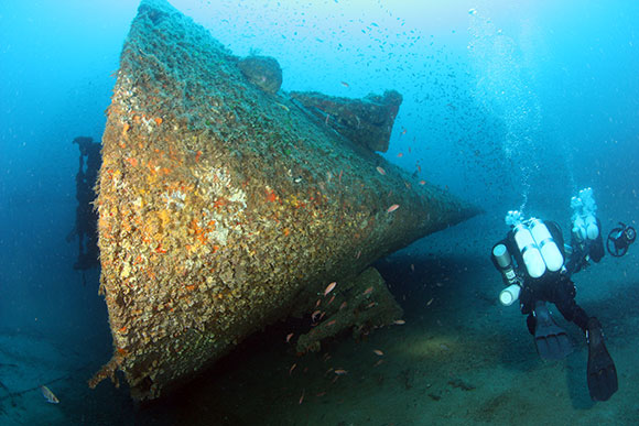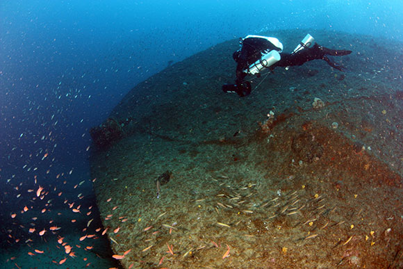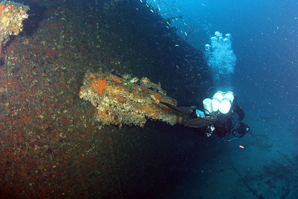 diving più vicino al relitto, posato su di un fondale di 57 metri davanti alla