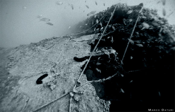 L’esplosione del carico di carburante ha devastato la nave che ora è interamente ricoperta di fango e diversi strati di reti da pesca. Queste condizioni rendono difficile sia l’immersione che l’identificazione della sagoma della nave. Ci troviamo quindi a pinneggiare delicatamente tra le lamiere di questo puzzle di storia, ora habitat di centinaia di pesci e crostacei.