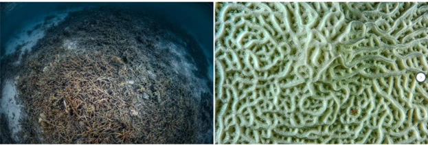 sbiancamento dei coralli, un fenomeno in cui i coralli espellono le alghe che conferiscono loro colore e vitalità. Ogni evento di sbiancamento indebolisce i coralli, riducendo la loro capacità di difendersi dalle malattie o di riprendersi dai danni subiti.