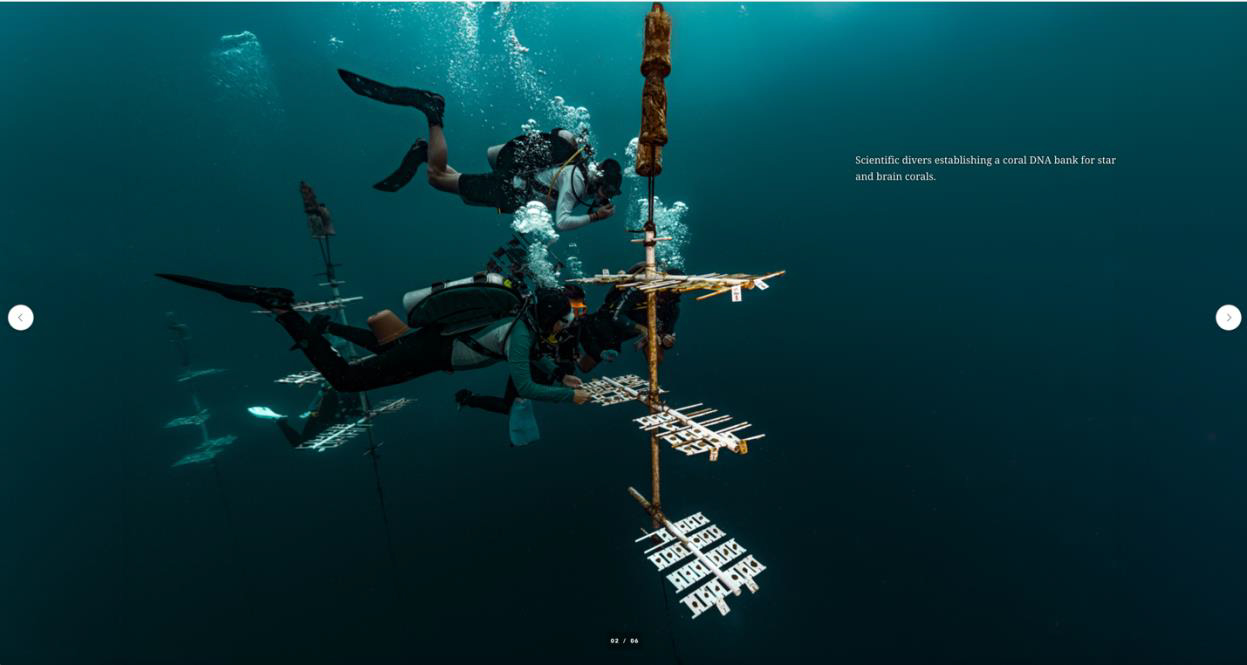 Gli scienziati monitorano i frammenti di corallo a corna d’alce piantati sul fondale. I frammenti sono posizionati su una struttura in bambù biodegradabile, che si dissolverà nel giro di pochi mesi lasciando una nuova colonia di coralli.
