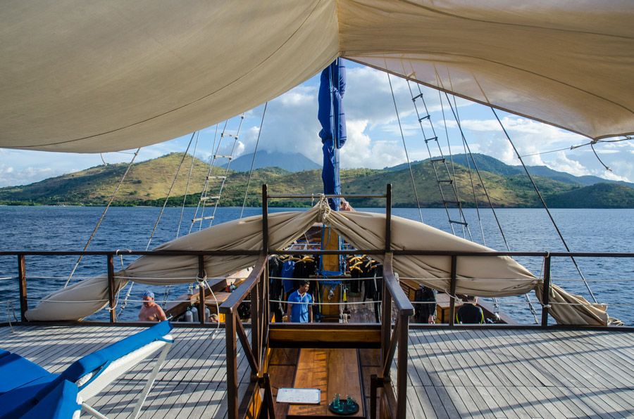 Samambaia, una goletta tradizionale Phinisi di proprietà di Gian Paolo Fanchini, un imprenditore italiano e subacqueo trasferitosi a Bali molti anni fa. Grazie alla sua ospitalità ho avuto il privilegio di trascorrere una fantastica crociera di 12 giorni, attraversando tutto il Mar di Banda da nord a sud, esplorando fondali incredibilmente belli e ricchi di vita.