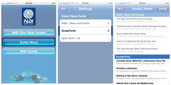 A distanza di qualche anno sono moltissime le società che hanno sviluppato applicazioni per la subacquea e anche noi abbiamo creato la nostra Scubaportal app per iPhone che fornisce una parte editoriale (NEWS), una mappa per gli operatori della subacquea italiana e alcuni link principali.