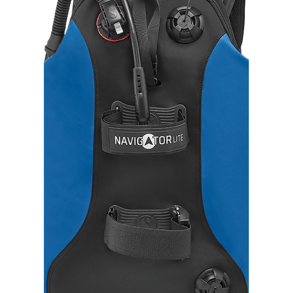 Il Navigator Lite garantisce un’eccellente stabilità sott’acqua, grazie alle fibbie Quick Cinch, collegate a una fascia di ritenzione hook & loop da 50 mm, che assicurano una tenuta ottimale della bombola. Il fascione ventrale imbottito offre comfort e regolabilità, con tasche removibili capaci di alloggiare fino a 2,5 kg di zavorra ciascuna.