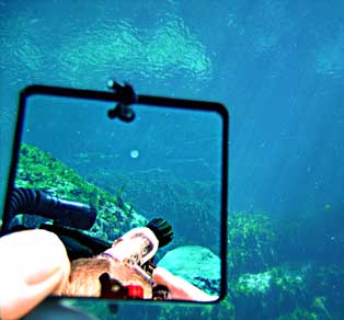 Invece di spostare tutto il nostro corpo, possiamo usare lo specchio per vedere cambiando solo il suo angolo e la sua posizione per esaminare il nostro ambiente subacqueo circostante. Possiamo cominciare ad essere più selettivi ed a risparmiare la nostra aria ed energia per qualche cosa per cui valga la pena di voltarsi indietro.